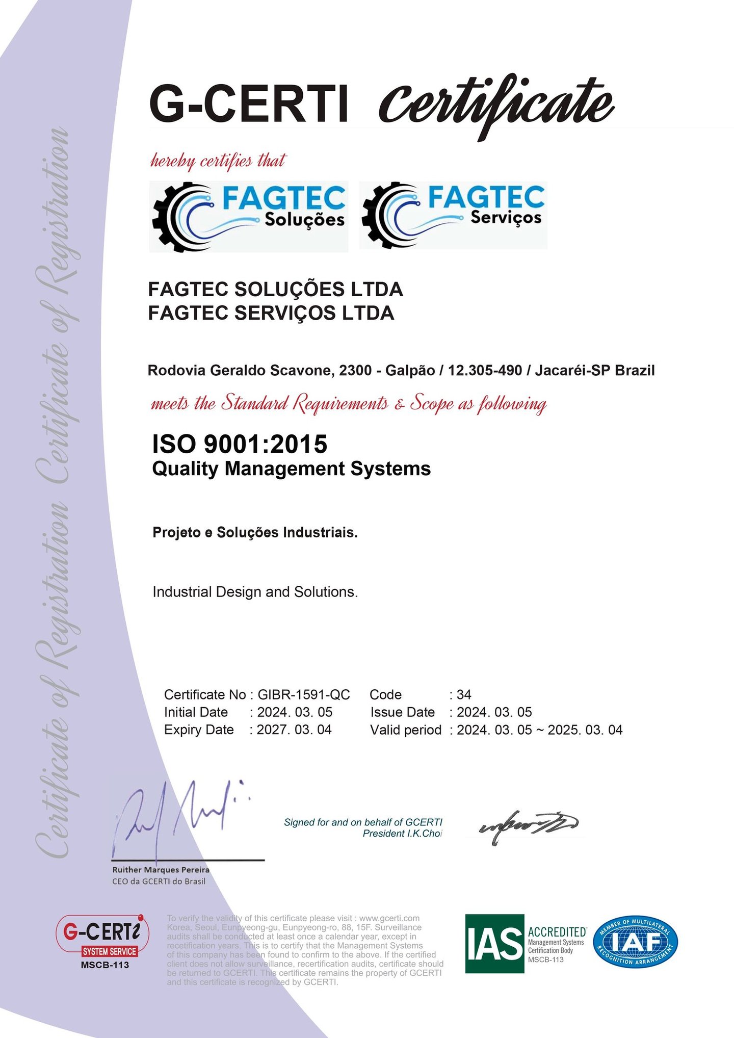 Na Fagtec Soluções, a qualidade é um dos nossos principais pilares. Por isso, seguimos rigorosamente os padrões da ISO 9001, a certificação internacional que atesta a excelência do nosso Sistema de Gestão da Qualidade (SGQ).